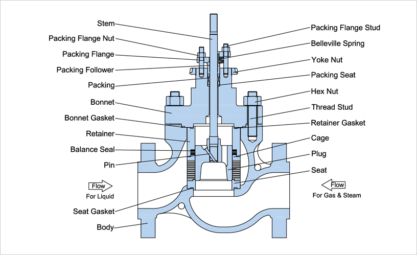 Cage guided Globe valve of GC100 series is a kind of control valve with large capacity, high dynamic stability which is suitable to a variety of heavy duty services. It is widely applied under large flow, high temperature and high pressure applications. Benefit from its balance plug, reliable control is realized with smaller thrust by the actuator. Instead of standard cage of GC100, GC200 series uses muti-hole cage, which may control fluid velocity in order to reduce noise and prevent cavitation. It is recommended to use GC300/AC300 labyrinth cage valve and GC400/AC400 control valve with multi-step plug, when GC100, GC200 couldnot fit with the fluid condition.